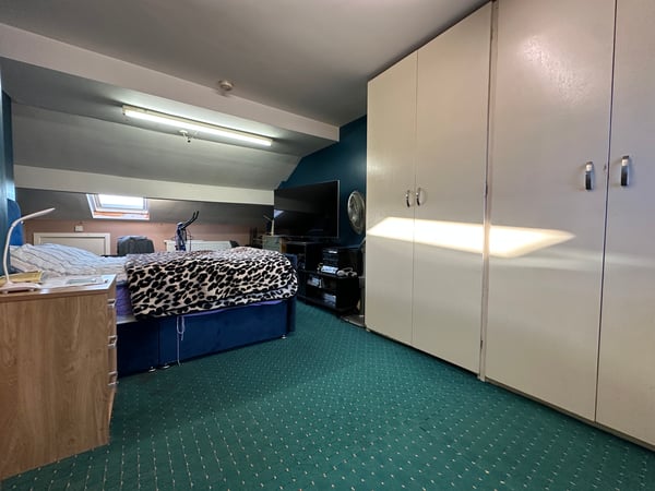 The fourth bedroom, located in the attic, is a stunning king-sized bedroom complete with its own en-suite bathroom, offering added comfort and privacy.